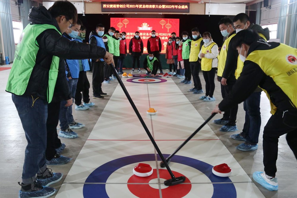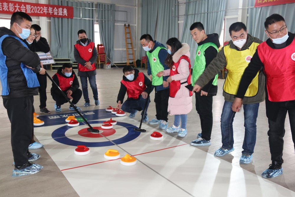 秉承冬奥会运动员的拼搏协作精神,在简单的午餐后,教练精心安排了一场“旱地冰壶“的运动。经过几轮简单的训练后,大家基本掌握了旱地冰壶的运动要领及得分技巧,正式比赛开始之后,经过4轮异常胶着的角逐,最终“皇家巡山队”绝地反击,获得本轮游戏的第一名。