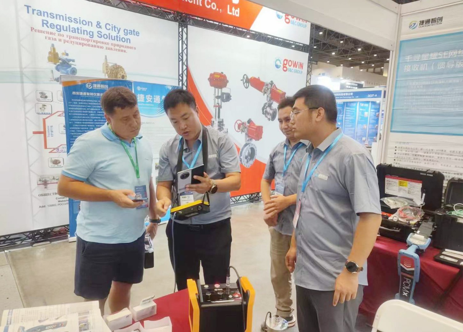 开展伊始,捷通智创2号馆 2E24展位就迎来了络绎不绝的采购商及同行业者,众多慕名前来的观众也对公司展示的新产品、新技术高度认可,现场气氛热烈,许多业内专业人士相谈甚欢,咨询采购、洽谈的人数飞速增长。展位现场人气一直都是居高不下,许多国外观众也纷纷在展位前或驻足停留、或洽谈合作、或聆听讲解,捷通智创的工作人员也是积极热情地与到场观众耐心讨论,现场气氛异常热烈融洽。