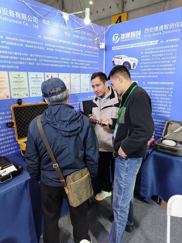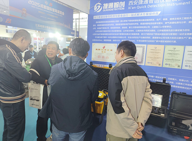 11月27日,迎来了由中国煤炭地质总局、中国测绘学会地下管线专业委员会主办的为期3天的2025年第十二届中国(成都)国际管网展览会城市生命线安全工程建设展览会第二天。本届展览会面积达40000多平方米,500多家参展商,700多家采购团体,40多场行业论坛,200多位演讲嘉宾,汇集了50000多观众。作为专业的交流、互动、协作平台,国内外顶尖的地下管网企业、行业内权威的专家学者都将齐聚于此。展览会首日捷通智创4号馆4A31号展台就人气爆满,众多行业大咖蜂拥而至,捷通智创自主研发生产的一系列燃气PE管道声波定位仪和PPB级高精准燃气泄漏巡检系统(车载及背包式)产品及激光甲烷泄漏检测仪产品和众多代理产品一经亮相,便受到了众多客户的喜爱,瞬间燃动现场。